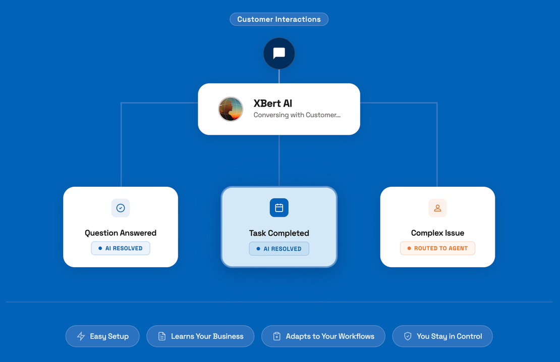 XBert learns your policies, your voice, and your protocols. With full context behind every response, responses stay accurate and on-brand. You can finally delegate to AI with real confidence.