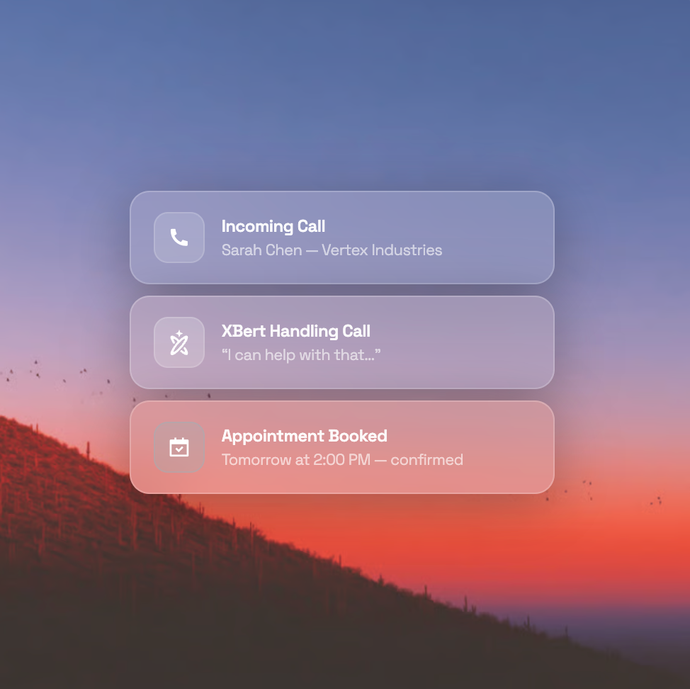 Every call answered on the first ring, 24/7. XBert greets callers, qualifies intent, routes to the right team, and books appointments — so your business never misses an opportunity.